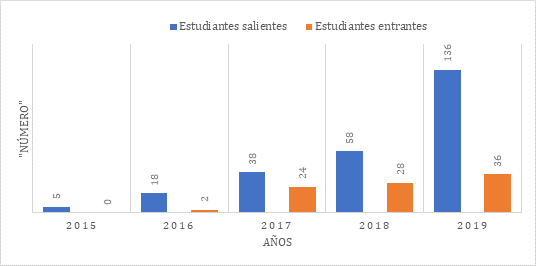 Figura 3. Estudiantes en movilidad académica 2014-2019