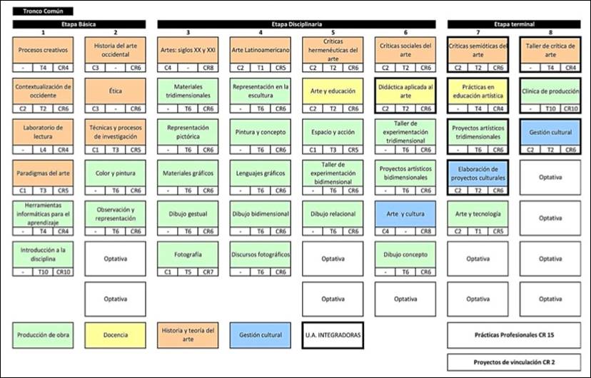 Figura 1. Mapa curricular de la Licenciatura en Artes Plásticas