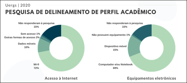 Os dados coletados na pesquisa de delineamento do perfil acadêmico serviram para conhecermos minimamente as condições dos acadêmicos e, assim, planejarmos de forma mais gradual, inclusiva e segura cenários de possibilidade de retorno às atividades. Ficou expresso e nos preocupou o número de estudantes sem acesso e/ou mesmo que não responderam à pesquisa, o correspondente a 15% dos acadêmicos de graduação que estavam regularmente matriculados no início do semestre letivo de 2020/1. No entanto, acreditamos que esse mapeamento também nos permitiu procurar outras formas de acessibilidade e parcerias para garantir e efetivar a participação da comunidade universitária.