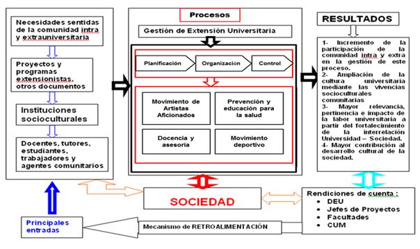 Figura 1. Mapa del proceso de gestión extensión universitaria en la Universidad de Oriente (UO).