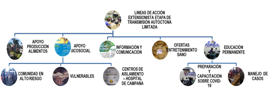 Figura 2. Principales líneas de acción extensionista, en la Universidad de Oriente, durante la Fase de Transmisión Autóctona Limitada