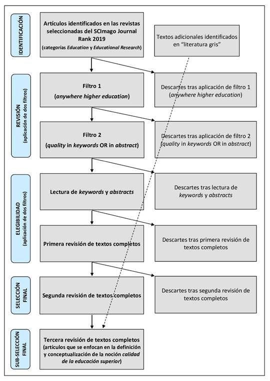Figura 1. Diagrama de flujo de la revisión de artículos sobre la calidad de la educación superior