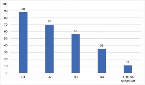Gráfico 1. Distribución según cuartil (Q) de las 260 revistas seleccionadas