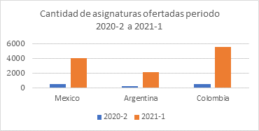 Gráfico 3. Asignaturas ofertadas periodo entre segundo semestre 2020 y primer semestre 2021