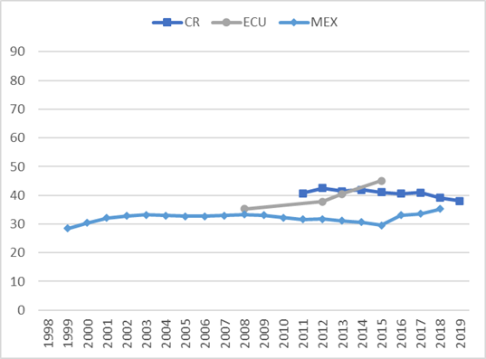 Nota: Las siglas corresponden a: CR: Costa Rica, ECU: Ecuador y MEX: México