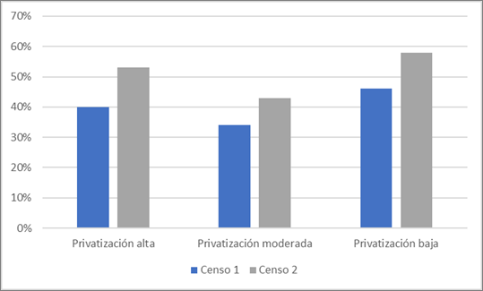 [5] Se debe informar que en los casos de Bolivia, Chile y Colombia fueron utilizados los censos realizados en la década de 1990 como “Censo 1” y aquellos efectuados a comienzos de los 2000 como “Censo 2”. Si bien es posible que la heterogeneidad en la periodicidad censal podría alterar los resultados de la investigación, lo cierto es que estos casos corresponden a los países que primero implementaron políticas de expansión en toda región, lo que respeta el objetivo de esta investigación.