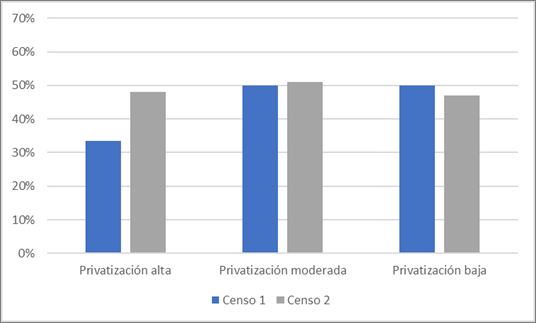 Para validar la propuesta de clasificación de los modelos de expansión, la Tabla 1 muestra los niveles de privatización que los países estudiados tuvieron en la década de 1990 y en los 2000s. Si bien los diseños institucionales varían entre países, una de las particularidades que se puede observar es que todos los Estados aumentaron o mantuvieron sus niveles de privatización, sin registrarse ningún caso en donde disminuyeran. Sin embargo, es necesario reiterar que esta propuesta es no teóricamente exhaustiva ni armoniosa: la creciente privatización de la educación superior es siempre el resultado de una miríada de factores históricos, socioeconómicos y políticos (Marmolejo, 2016).
