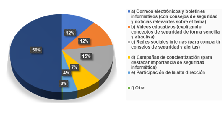 Según las encuestas realizadas, los estudiantes identifican que los recursos comunicativos más importantes para preservar la seguridad informática son los correos electrónicos y boletines informativos, seguidos por publicaciones en redes, videos educativos y, sobre todo, la participación de la alta dirección. La razón de tal preferencia radica en el criterio de que los mensajes enviados a los correos electrónicos no solo informan, sino que educan, partiendo de contenido relevante. La participación de la alta dirección de la universidad en la difusión de estos mensajes y recursos comunicacionales refleja, para los estudiantes, un compromiso institucional con la seguridad informática.