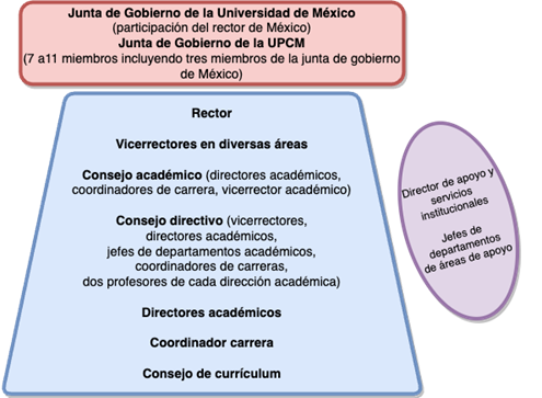 Desde una perspectiva comparada, López (2002) y autores como Baldridge et al. (1982), Birnbaum (1988) y Lomi y Harrison (2012) han identificado distintas formas de gobierno universitario —burocrático, colegiado, político, anarquía organizada y cibernético— que, en el caso mexicano y latinoamericano, se combinan en modelos democráticos elitistas, jerárquico-burocráticos, oligarquías académicas, oligarquías empresariales o religiosas, y estructuras híbridas. Así, las universidades católicas mexicanas suelen adoptar formas de gobierno oligárquicas o jerárquico-burocráticas, donde la toma de decisiones es centralizada, pero combinada con prácticas colegiadas en órganos consultivos y académicos (López, 2002).